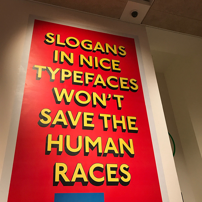 There’s a quote in a recent review in The Guardian that I thought particularly apt: “As you drift through the space, one of the overriding themes is quite how powerless the traditional tools of professionalised design and marketing now appear to be in contrast to the DIY alternatives, whether they be pasted on the wall or shared on Facebook.”
